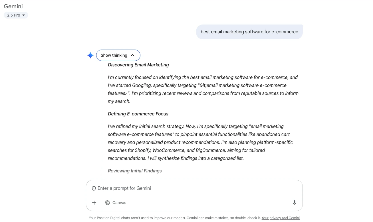 This will reveal how Gemini is breaking down your query, including what assumptions it’s making, what angles it’s exploring, and which sub-questions it’s using to build a complete answer.